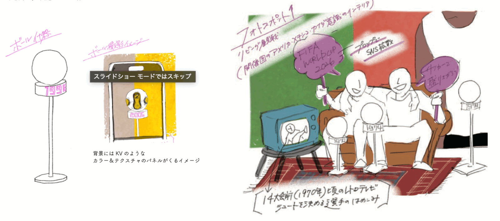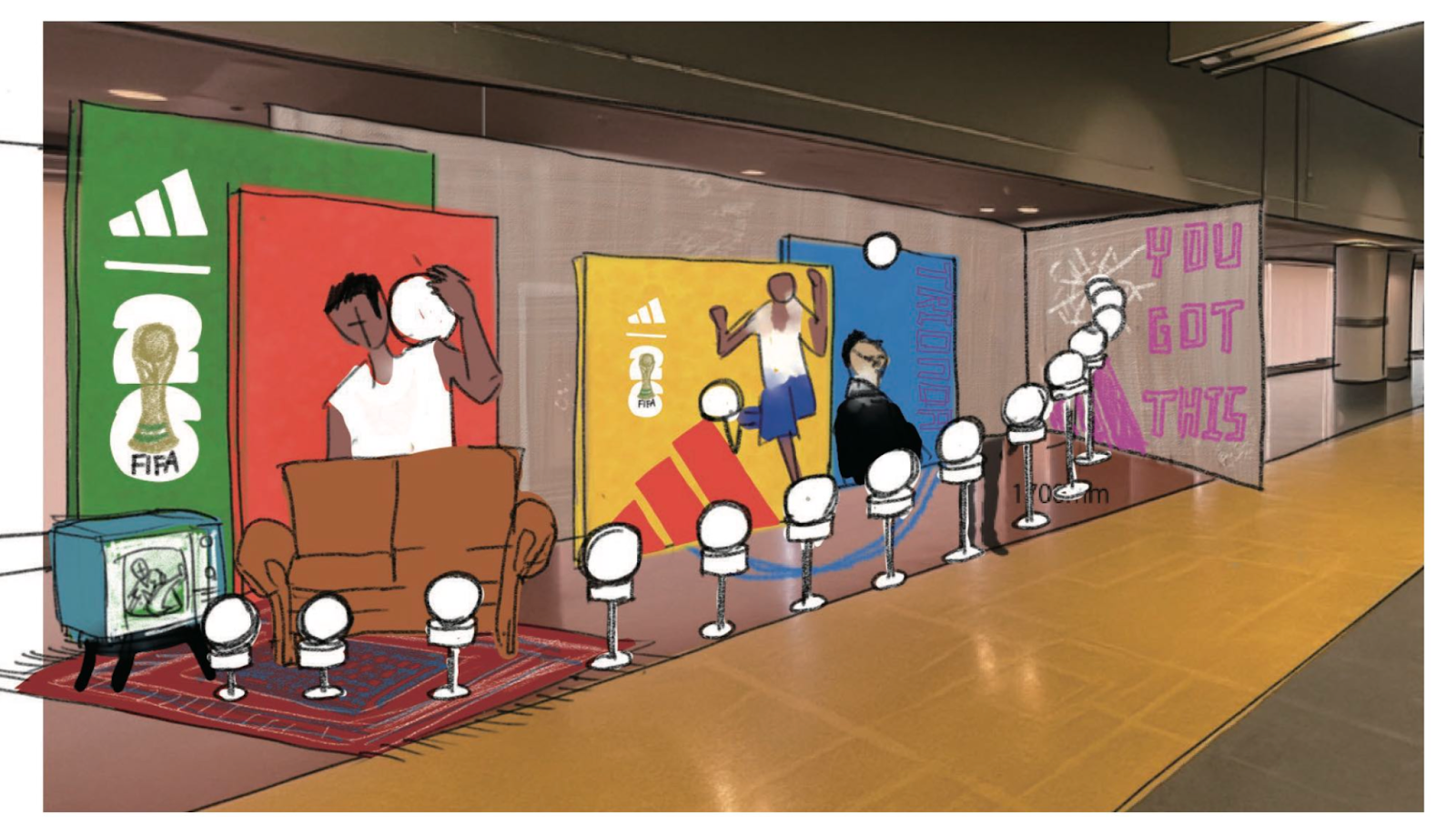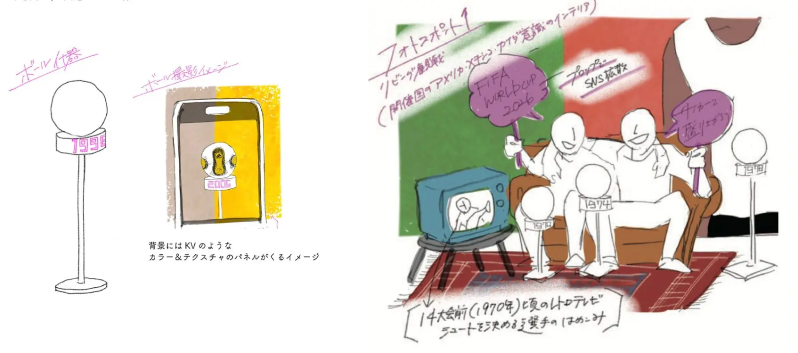 adidasとFIFAワールドカップが共に歩んできた歴史を、60年を貫く「公式球の変遷」とともに展示しながら、来年の北中米ワールドカップで生まれる見たことのないような衝撃的・感動的な瞬間を印象的に伝えるべく「Penetrate it.」のコンセプトに沿って、企画プロデュースを行いました。